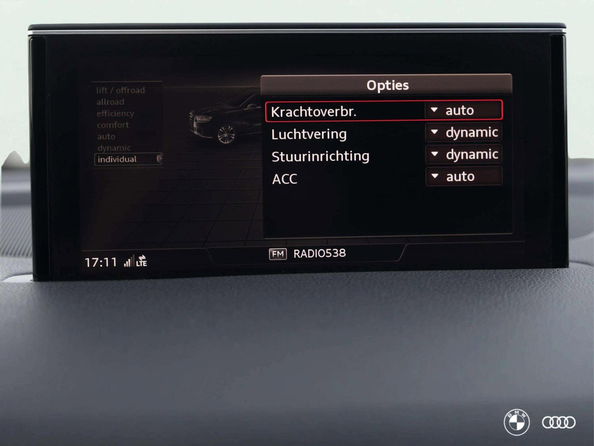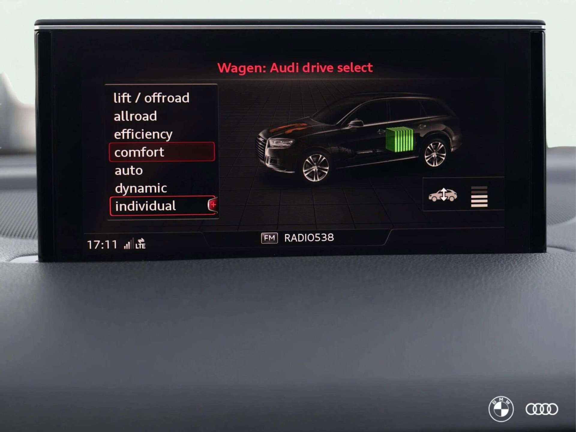 Audi Ambiente Plus verlichting 9VL: BOSE Surround system Audio installatie high end DVD speler Multimedia-voorbereiding WiFi Smartphone integratie Audio installatie Navigatiesysteem full map + hard disk Spraakbediening Stuur multifunctioneel